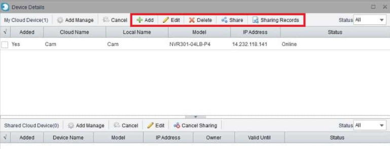 - Device Detail : Gán thêm , chia sẻ , sửa , xóa thiết bị đầu ghi NVR và IPC